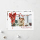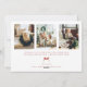 Wish your family and friends a Merry Christmas with a personalised DIY Christmas red bow photo Christmas card showcasing your family on the front wrapped up like a Christmas present in a red bow, and a back side with 3 family pictures and an editable note in a horizontal orientation.