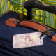 This rare luggage tag features a unique, girly design that stands out from the crowd.