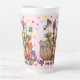 All cute pastel coquette with a tea party setting, tea cups, pastries, candle drum, bird, cat, butterfly, bee, dragonfly, cute things and etc