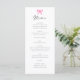 Wedding Menu for reception featuring watercolor pink bow coquette.