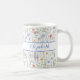 Beautiful boho-inspired mug featuring cheerful watercolor wildflowers in various shades of blush, pink, lavender, yellow, blue and green. Personalise it in blue with your name or the name of a loved one for the perfect gift!