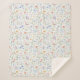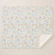 Beautiful boho-inspired sherpa blanket featuring cheerful watercolor wildflowers in various shades of blue, blush, pink, lavender, yellow and green.