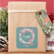 Coquito label with a Christmas wreath and Puerto Rican flag ribbon.