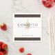 Coquito Tradicion Puertorriquena elegant design with matte gold Christmas tree design advertising paper cocktail napkins, brown personalised text on a white background.