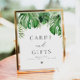 This cards and gifts sign template features tropical watercolor palm leaves and an elegant script font combination. This sign is perfect for your destination wedding, beach bachelorette, modern gender neutral baby shower, luau bridal shower, or any other special event.