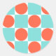 Coral and Aqua Circle Chequerboard Classic Round Sticker