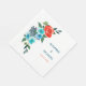 These pretty wedding reception or bridal shower paper napkins feature a stunning bouquet of aqua flowers, green leaves, and a bright coral rose. Your custom text is at the right. These napkins match the Confetti Coral and Aqua Floral Wedding line in our store.