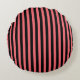 Coral and black candy stripes round cushion