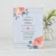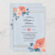Coral and Dusty Blue Floral Geometric Wedding Invitation