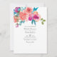 Coral and fandango (purple) watercolor roses and peonies wedding invitation with turquoise leaves. Ideal for any given theme or garden wedding. The QR code on the reverse directs to your wedding site where people can learn more and rsvp.