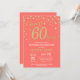 Coral and Gold 60th Birthday Diamond Invitation