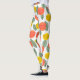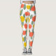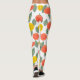 These leggings have a Scandinavian design of flower and leaves scattered about in coral, gold, and sage green.