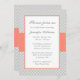 A stylish grey chevron pattern with coral accents is featured on this modern bridal shower invitation. Preppy and cute -- Easily personalise for your bridal shower!