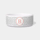 A trendy colour palette of dove grey and coral makes this monogrammed dog or cat bowl a must for a pampered pet! Design features a hand drawn, modern quatrefoil pattern in pale grey and white, with your pet's single initial monogram displayed in contrasting summery coral.