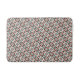 Bath mat with a fun modern pattern of small diamond tiles in coral orange, mint green, black, and white.