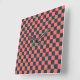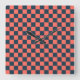 Coral and navy checkerboard pattern square wall clock