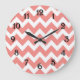 Coral and White Chevron Large Clock