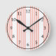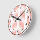 Coral and white five stripe pattern round clock