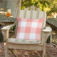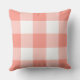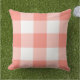Pillow design features a casual gingham plaid / check pattern that is perfect for summertime! Note, you can customise the coral orange / pink background colour to coordinate with your outdoor decor.