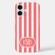 Coral and White Monogrammed Stripes Case-Mate iPhone Case