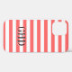 Coral and white striped monogram iPhone 12 case. Cute nautical theme phone cover with stripes. Personalizable background colour. Make your own text. name or monogram. Great personalised gift idea for men women and kids.
