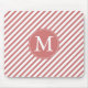 Coral and White Stripes monogram Mouse Pad