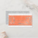 This orange, blue, white, and grey damask place card matches the wedding invitation and other items shown below.