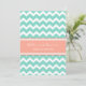 Custom rehearsal dinner party invitations in modern and elegant turquoise teal blue, peach orange pink and white fun chevron zigzags pattern. Personalise the text to create a unique invitation for your wedding rehearsal dinner. Contact us to request a colour change. Available in many matching wedding products.