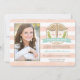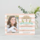 Add your favourite photo to these pretty, pale coral and white striped nursing school graduation announcements and invitations with a caduceus flanked by two pink hearts and a green laurel wreath. Customise the aqua blue hued banner with the year of the graduate's graduating class and your own wording on the back. The watercolor look peachy pink background is soft and feminine. A faux glitter look design outlines the circular logo and graduate's picture. The party invite can be personalised the graduate's name, degree and party details. Please, note, no 3D embellishments have been added to this invitation. The artwork was created to simulate the look of glitter and texture. Artwork and design © Chrissy H. Studios, LLC. All rights reserved. Photo credit: Susie Moore Photography