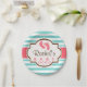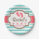 Coral, Aqua, & White Stripes Baby Shower Paper Plate
