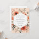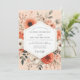 This design features a lush arrangement of painterly florals in a romantic palette. Soft shades of coral, terracotta, and warm peach blend beautifully with creamy white anemones and muted grey-green foliage. Delicate sprigs and leaves create a sense of depth and elegance. The overall mood is artistic, warm, and timelessly romantic for your special day.
