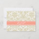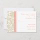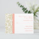 Wedding RSVP cards in elegant and contemporary light tan beige taupe sand brown, peach orange pink and white classic and chic floral vintage damask pattern. Customisable with your wedding details, available in many matching wedding products.