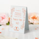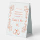Coral coloured wedding table number bells design. You can customise this coral coloured wedding table number with your own wedding details. Should you require any help with customising then contact us through the link on this page. Bells scrollwork design personalised coral coloured wedding table number