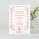 Wedding menu bells design. Customise this coral coloured wedding menu with your wedding details. Should you require any help with customising then contact us through the link on this page. Coral coloured bells design personalised wedding menu