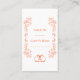 Coral coloured wedding table place card bells design. You can customise this coral coloured wedding table place card with your own wedding details. Should you require any help with customising then contact us through the link on this page. Bells and scrollwork design personalised coral coloured wedding table place card
