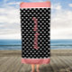 Coral Black and White Polka Dots Custom Bath Towel. Simply edit text to personalise!
