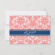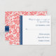 Coral Blue Damask RSVP Wedding Card