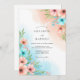 Coral Blue Floral Whimsy Wedding Invitation