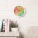 Coral, Blue, Green, Pink Abstract Fluid Art Clock