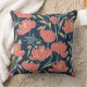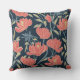 Presenting our striking Coral Breeze Floral Throw Pillow, a fusion of vibrant colours and captivating design that will instantly enliven any space. This eye-catching decorative pillow showcases an exquisite pattern of coral and light yellow flowers with delicate blue stems, all set against a dark, dusty blue background. It is a stunning addition to your home decor, exuding elegance and charm in every detail.