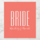 Coral Bride Personalised Name Wine Label. Customise the text (shown in white) and choose your background colour (shown in coral)