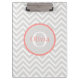 The Coral Chevron Monogram Clipboard features a design of a light grey chevron pattern with a circle emblem outlined in coral. Additional items available with this design as well. Please contact me directly for assistance with personalisation.