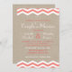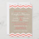 Coral and white chevrons on an illustrated burlap background accent this shower invitation. The coordinating wedding invitation and RSVP are available; however, if additional items are needed for your wedding just contact us at prettyfancyinvites@gmail.com with your request.