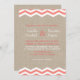 Coral and white chevrons on an illustrated burlap background accent this wedding invitation. The coordinating RSVP is available; however, if additional items are needed for your wedding just contact us at prettyfancyinvites@gmail.com with your request.
