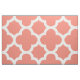 Coral quatrefoil fabric (Large pattern version, you can use the "Customise It" tab to easily change the scale of the pattern to suit your project). This versatile clover quatrefoil trellis pattern fabric is available as machine washable 56" wide combed cotton, 54" wide pima cotton, 58" wide cotton twill, 60" wide polyester poplin, 58" wide woven polyester or linen which has a width of 54 inches and is dry clean only. Available as swatches, fat quarters, or by the yard. Printed in the USA. A choice of perfect cloth fabrics in modern colours for home decor, upholstery, quilting, crafts, apparel, appliqué or other textile DIY projects.
