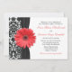 Coral gerbera daisy flower, black and white damask floral and ribbon wedding invitation. The colours on this invitation are coral orange, black and white. This invitation is currently customised for a wedding, but could work well for a variety of special occasions. All you need to do is change the text.