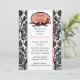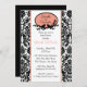 Start off your event off right with our Bridal shower invitation featuring a beautiful oval frame with birds on branches with White & black damask with coral trim. Trendy white & black colour combination. Just customise our invitation with your wedding information and you're all set to go