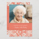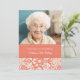 Custom photo 90th Birthday party invitations in elegant peach orange, cream and white classic floral damask vintage pattern. Add your name, photo, and party details for a unique and stylish birthday party invitation.