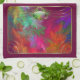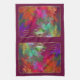 Brilliant orange, pink, blue, green, purple, yellow, and turquoise fractal patterns like a riot of coral, with decorative gold framing containing a single smooth gem.