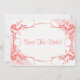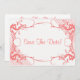 This Coral Fancy Save The Date Announcement features swirls and lines in a Coral or Salmon colour.